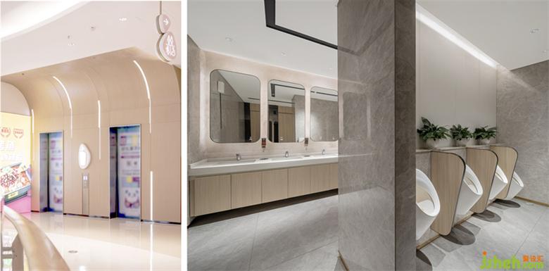 不只是商業(yè),設計師希望在整個商業(yè)空間的設計體系中,各個貼近人體尺度的附屬空間,在延續(xù)主空間風格的基礎上,商場設計通過溫和的木紋質感和柔和曲線,進一步提升空間質感,為電梯廳、休息區(qū)、衛(wèi)生間、停車場等區(qū)域注入人性化關懷,讓空間更有溫度。