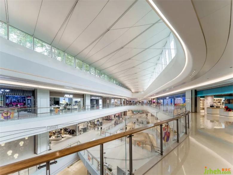 天窗造型結(jié)合整體建筑的曲線(xiàn)走向,商場(chǎng)設(shè)計(jì)引入自然光與室內(nèi)光線(xiàn)結(jié)合,營(yíng)造明亮通透、壯闊大氣的空間。