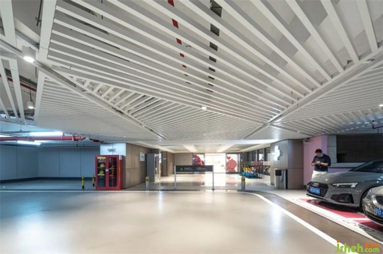 行車通道、停車場(chǎng)及商業(yè)連接口處天花采用白色鋁格柵,結(jié)合空間動(dòng)線錯(cuò)位排布,使整體空間有序而生動(dòng),簡(jiǎn)單而不失品質(zhì)。