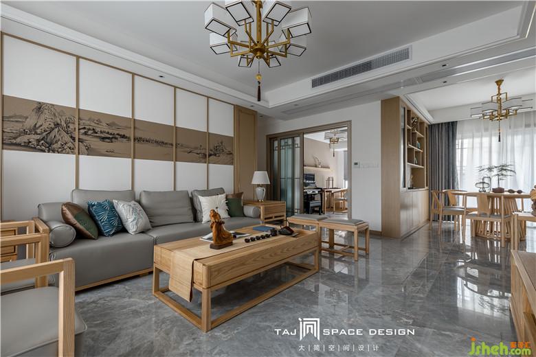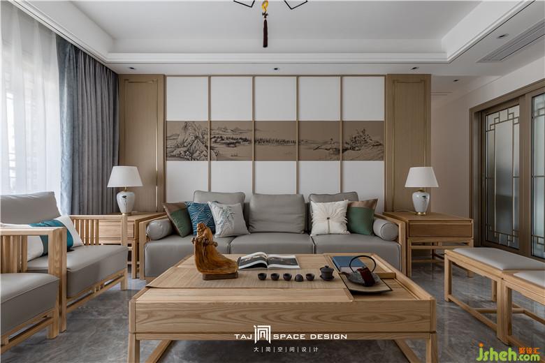 室內(nèi)設(shè)計師在客廳背景墻上運用山水畫為點綴。山映云景,水接人家。設(shè)計師執(zhí)筆作畫,方寸間勾勒出空間中的小細(xì)節(jié)與詩情畫意。