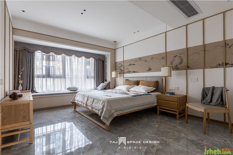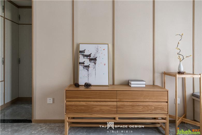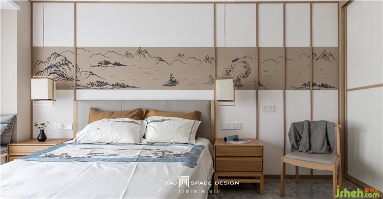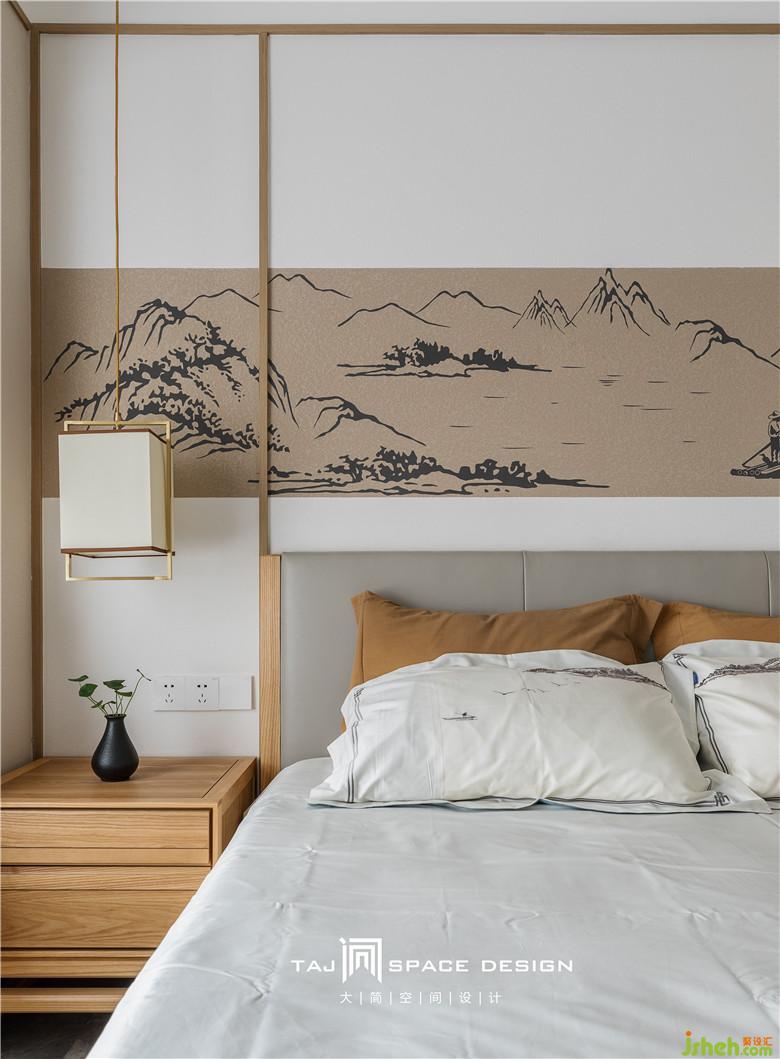 金屬吊燈與家私的實(shí)木質(zhì)感交疊出空間層次,床頭的陶瓷瓶與綠植進(jìn)行點(diǎn)綴,加強(qiáng)空間的意境感。