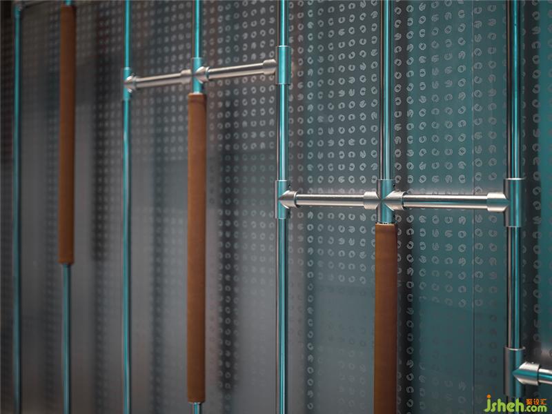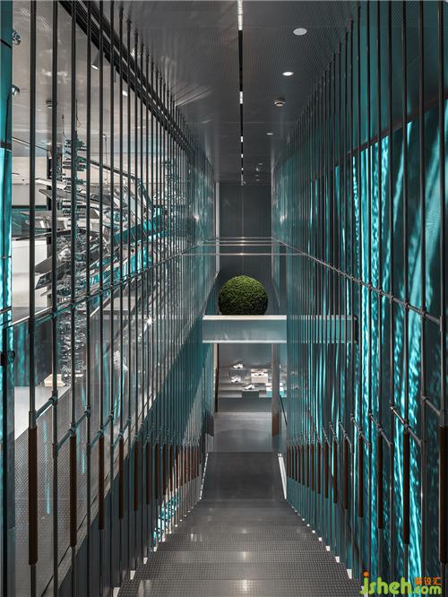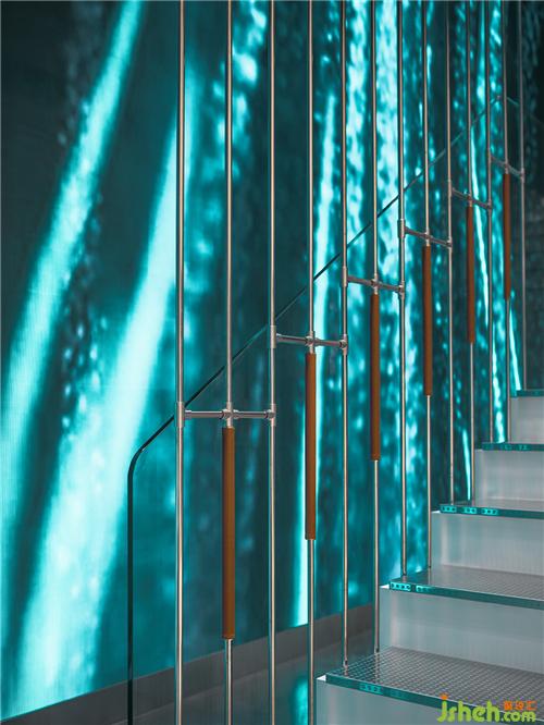 樓梯頂部與側(cè)面綴滿ECCO的金屬蝕刻logo,將品牌印記幻化為一種藝術(shù)符號,低調(diào)而又極富存在感地交織在空間之中。