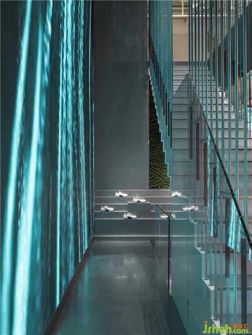 綠植裝置讓這個場景感受更加環(huán)保,ecco全球旗艦店并非純粹的營銷空間,而是提供給城市一個更開放的「客廳」,成為令體驗者安全舒適的城市空間。