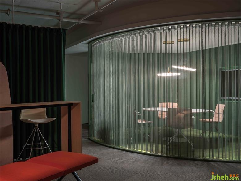 會議室造型好似一個蟲繭,孕育著一個個思想,通過激烈的掙扎、碰撞,破繭,最終羽化成蝶。