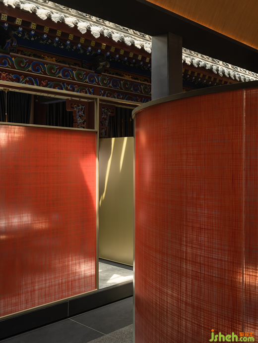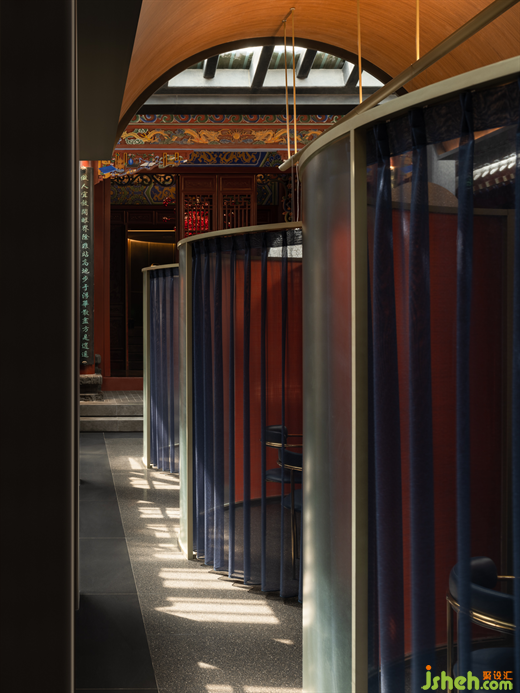 半遮半掩間,撥開一層層的帳紗,就像撥開歷史重重的神秘面紗,撞見的卻同是清歌歡語,塵世浮生。火鍋店設(shè)計師深諳隱逸之趣味,在這里歷史與現(xiàn)代在此交匯,相映成趣。