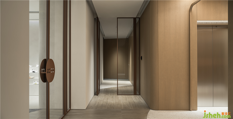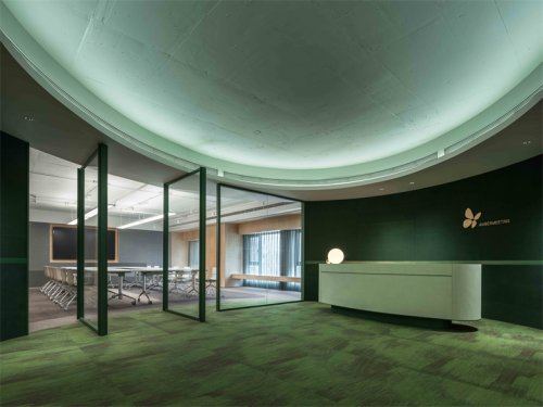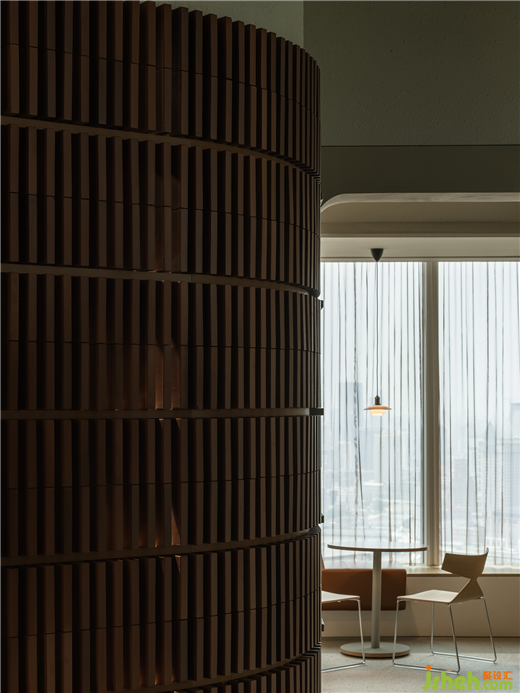 在上海的街道上散步時(shí),人們不禁會注意到裝飾城市老建筑的小拱門??偛哭k公室裝修設(shè)計(jì)師從這個(gè)元素中汲取靈感,并將其融入到迎接訪客的第一個(gè)空間——電梯大廳中?;⌒尉€條引導(dǎo)著運(yùn)動流動,創(chuàng)造了一個(gè)三維的視覺效果,其交錯的圖案相互銜接。