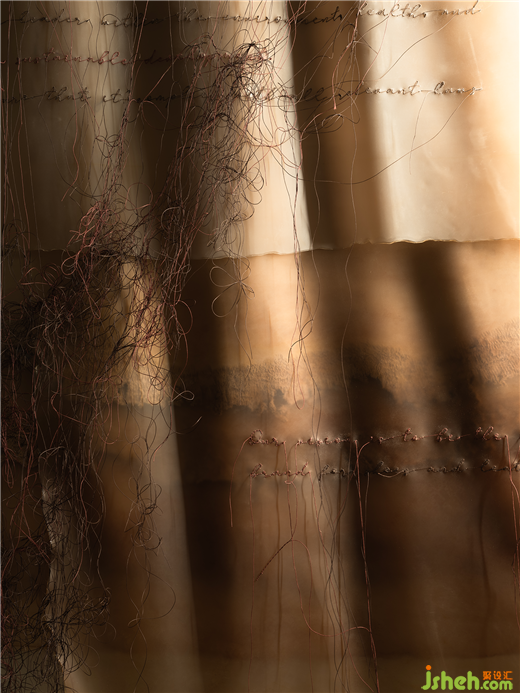 幾個(gè)世紀(jì)以來,蘇繡以其千年歷史在東方美學(xué)哲學(xué)中被視為一個(gè)重要元素。紅山設(shè)計(jì)將傳統(tǒng)的刺繡技術(shù)與當(dāng)代藝術(shù)和文化無縫融合,創(chuàng)造出散發(fā)著時(shí)間與深度溫暖氣息的藝術(shù)裝置。這個(gè)獨(dú)特的裝置承載著時(shí)間的痕跡,是文化交流的重要媒介。設(shè)計(jì)師們深入探索抽象和現(xiàn)實(shí)、簡單和復(fù)雜的深度,讓裝置充滿無限情感共鳴,創(chuàng)造出一個(gè)不僅有著美學(xué)優(yōu)美,而且能夠引起觀者深刻情感共鳴的環(huán)境。