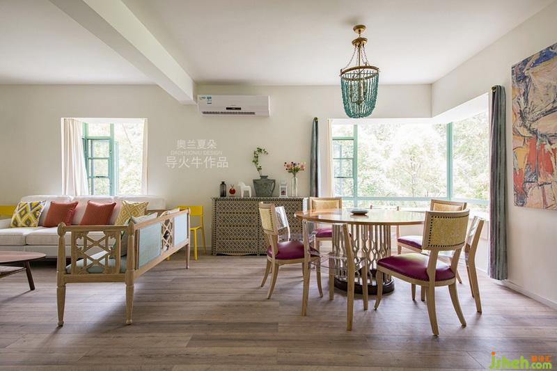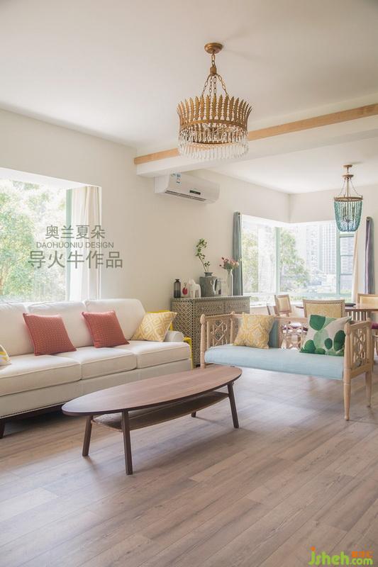 7月29號的清晨,攝影師一進到這個房子大為贊嘆,陽光從3個自然采光門窗穿透進來,整個客廳沐浴在神清氣爽的晨光中,這是今年所接項目中自然采光最好的一戶,空氣對流暢通無阻,春季窗外的鳳凰樹開得特別絢麗,夏季天臺的青瓜藤爬滿了欄桿,室內(nèi)的用色非常應(yīng)景。