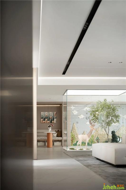 一棵樹(shù)、一片天、一池水、一只鹿,拓展了空間的格局與氣度,給予自然而然的儀式感和親近感。