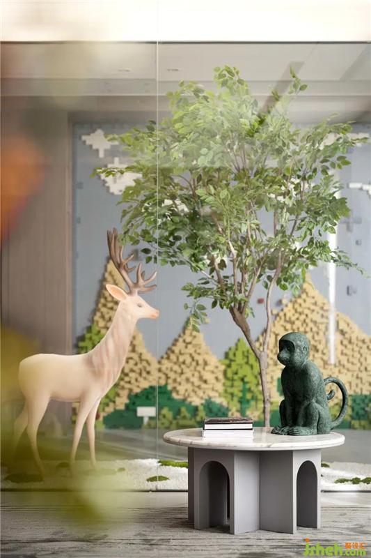 鹿,幽山林逐食良草,安于自然,眼睛里盛放著極凈的安然與美好,鹿有許多美麗的傳說(shuō),為純善瑞獸,自古就是吉祥與幸運(yùn)的化身。本案選擇祥瑞象征的“鹿”作為主題概念之一, 既承載了人們對(duì)美好生活的向往,又實(shí)現(xiàn)了藝術(shù)追求。