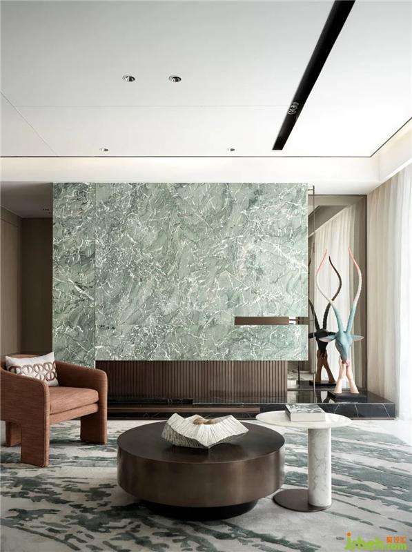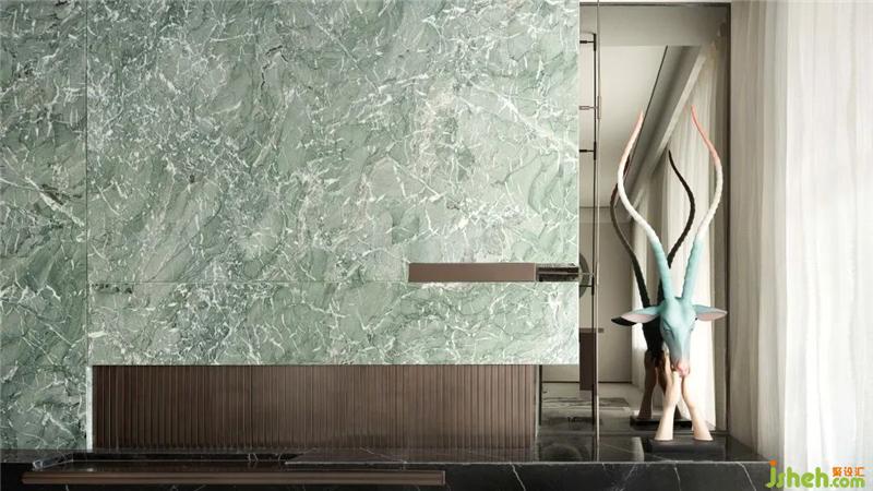 “悠閑自得”、“安閑自在”之意被莊子認(rèn)為是最高的人生境界??蛷d內(nèi)綠色石材與環(huán)境恰到好處的融合,選用雕塑家趙凱《自在》系列的作品,描述的是人的自然本性和動(dòng)物靈性的依存關(guān)系,在這個(gè)浮躁的時(shí)代,尋求內(nèi)心的寧?kù)o,塑造一個(gè)寂靜、安詳、悠遠(yuǎn)的境界,挖掘生命之間在精神層面上的溝通和交流,人性與物性的通靈。居于林間新綠,聞呦呦鹿鳴,自然靜謐的空間中以鹿為伴,閑逸之靈,與仙同往。