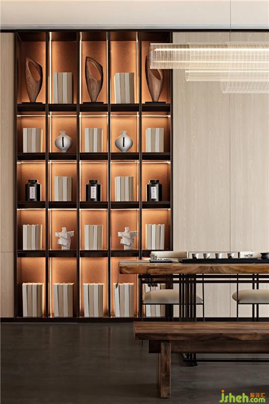 形與意相得益彰,使其空間依稀有物,自然的光、藝術(shù)脈絡(luò)和生活的軌跡有序交織,東方與現(xiàn)代的雋永,文雅與當(dāng)代生活的簡(jiǎn)約時(shí)尚,相融共生,構(gòu)建出輕松舒適、愉悅愜意的交談場(chǎng)域。