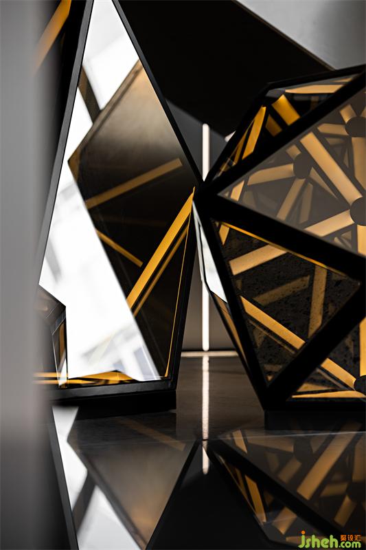 營銷中心設(shè)計對光影關(guān)系的探索,利用幾何形體演變出藝術(shù)裝置,追求極簡效果。
