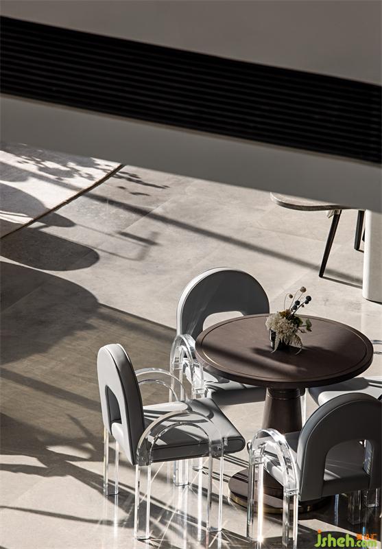 Through the transformation of modern decoration, the cold and sumptuous metal responded to the space thickness and texture, facing to the glass curtain wall, one side is slow, another side is mellow, showing a harmonious state of freedom.