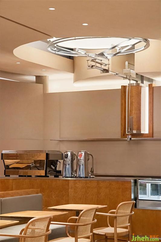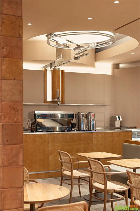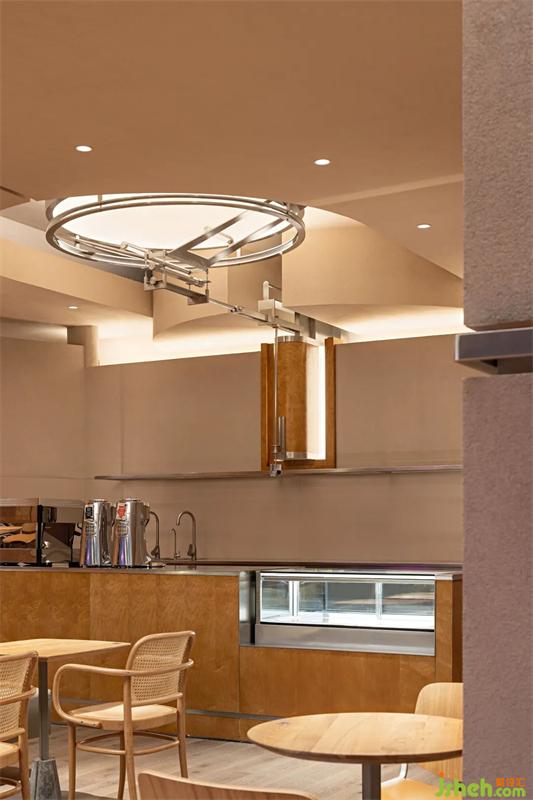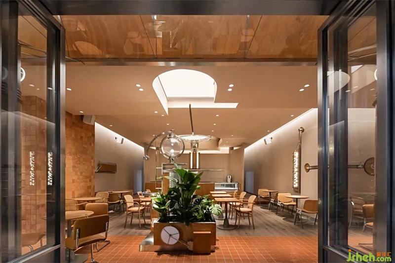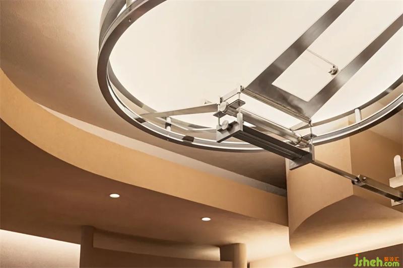 木與金屬、幾何形體與弧線穿插疊加,模糊空間邊界的同時(shí),餐廳設(shè)計(jì)打造虛實(shí)交錯(cuò)的沉浸式感官體驗(yàn)。
