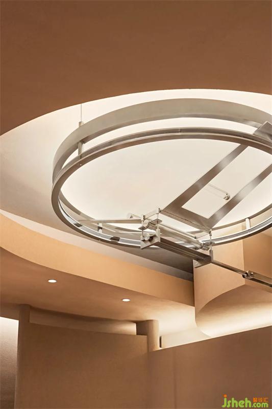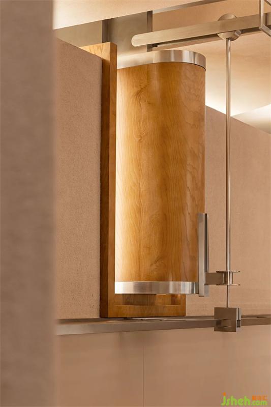 元素的構(gòu)造通過(guò)金屬、原木材質(zhì)的冷暖質(zhì)感的對(duì)比、空間結(jié)構(gòu)的對(duì)稱、特異組合,構(gòu)成邏輯處理空間秩序形成的辨識(shí)度和個(gè)性,經(jīng)過(guò)多面切割和重新組合形成了獨(dú)特的空間序列。