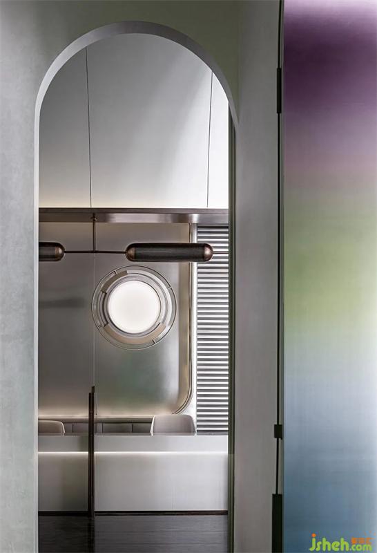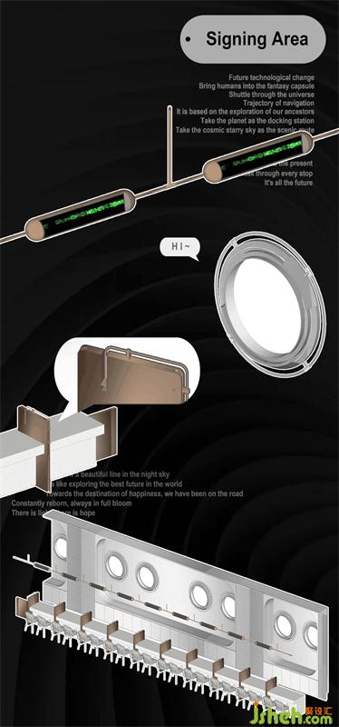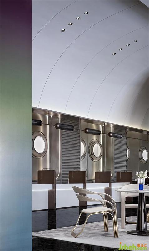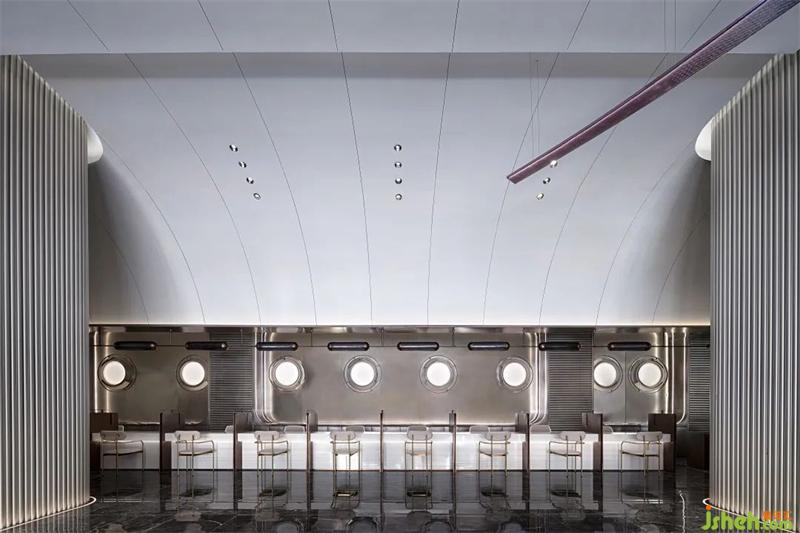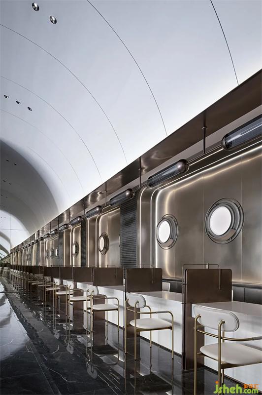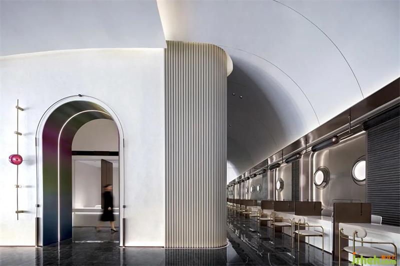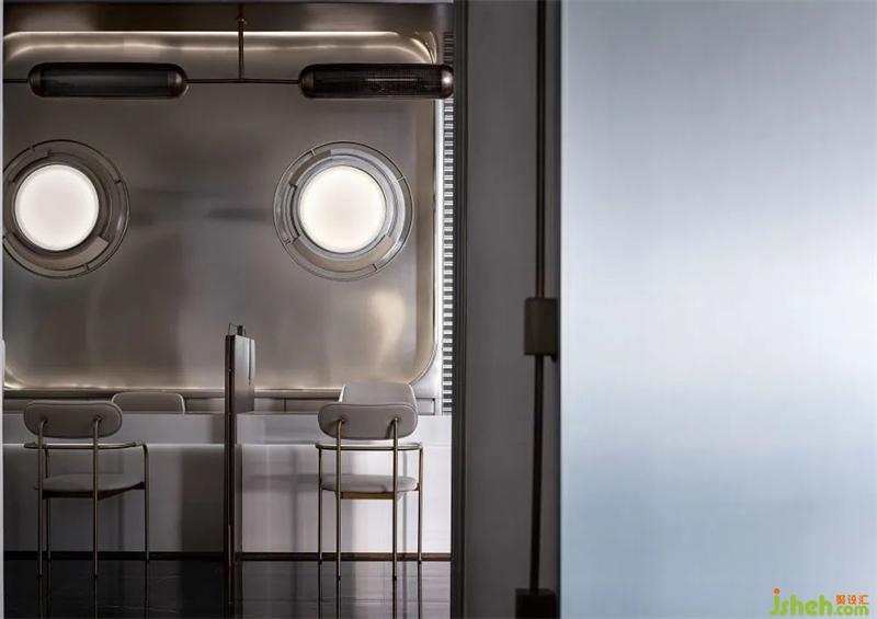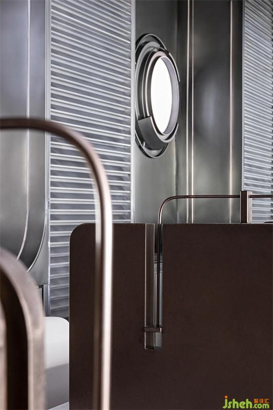 空間所引導(dǎo)的行為和體驗,較之前場區(qū)域形成了某種情感上的遞進(jìn),而這一部分,由通過金屬材質(zhì)的對比、圓形尺度的掌控,抽象的星際專列由此予以實現(xiàn)。