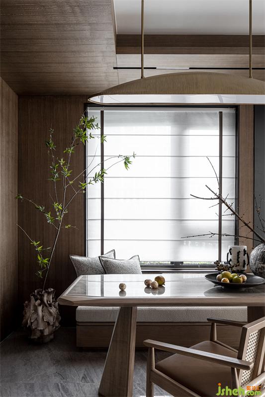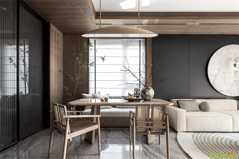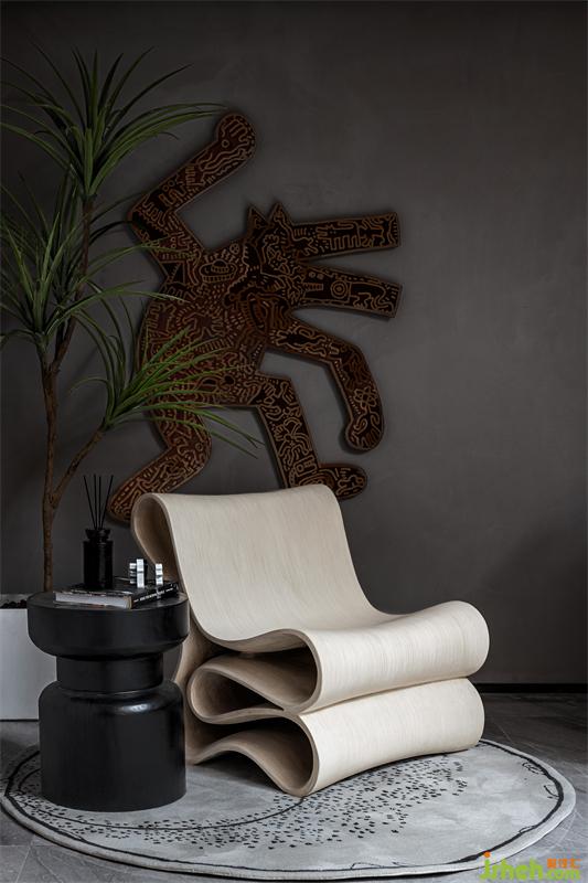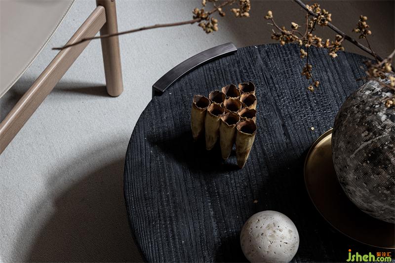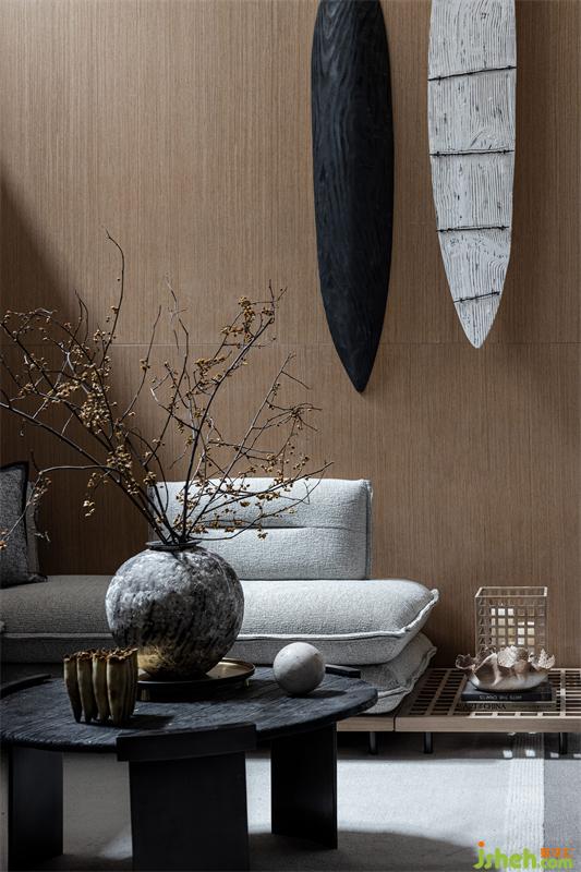 原石打磨穿制的藝術(shù)品掛件,與墻面的留白壁面相得映彰,樣板房設(shè)計(jì)黑色、白色、胡桃木色傳遞出溫暖的質(zhì)感,有一瞬間總會(huì)憶起過往漫漫的歲月長河。