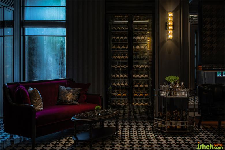 客廳利用酒柜進(jìn)餐廳設(shè)計(jì)行多重隔斷,消解原始空間過大的尺度。酒吧臺與火爐沙發(fā)區(qū)共存,談笑間,觥籌交錯(cuò),氣氛微妙而美好。
