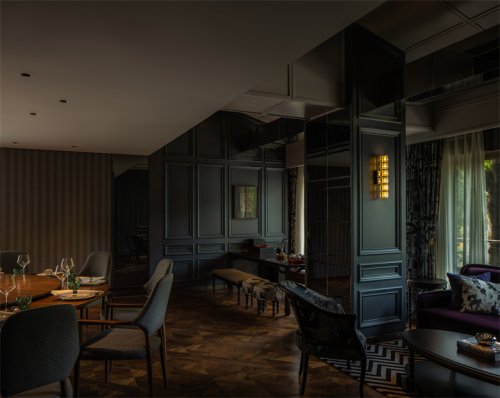 黑色金屬大門外四季流轉(zhuǎn),門內(nèi)暖光詩意,傳遞謙遜與優(yōu)雅。