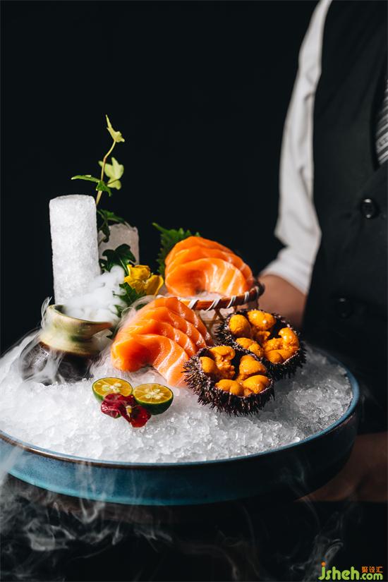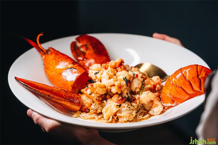 北宋文學家、美食家蘇軾曾言:百事常隨緣,飲食窮芳鮮。山膚水豢,水陸畢陳,尋味至此,物美食鮮。一層海鮮島使用明檔海鮮吊架圍合,擺放五谷類食材和珍貴干貨,下置傳統(tǒng)透明海鮮池,池內(nèi)生機勃勃,鮮活可見。