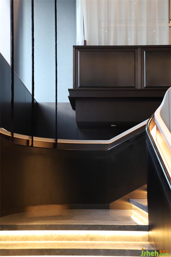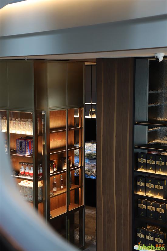 右側(cè)透明擺臺上的“明月”燈飾,兩者共同構(gòu)城這幅“明月出天山,蒼茫云海間”的空間藝術(shù)。