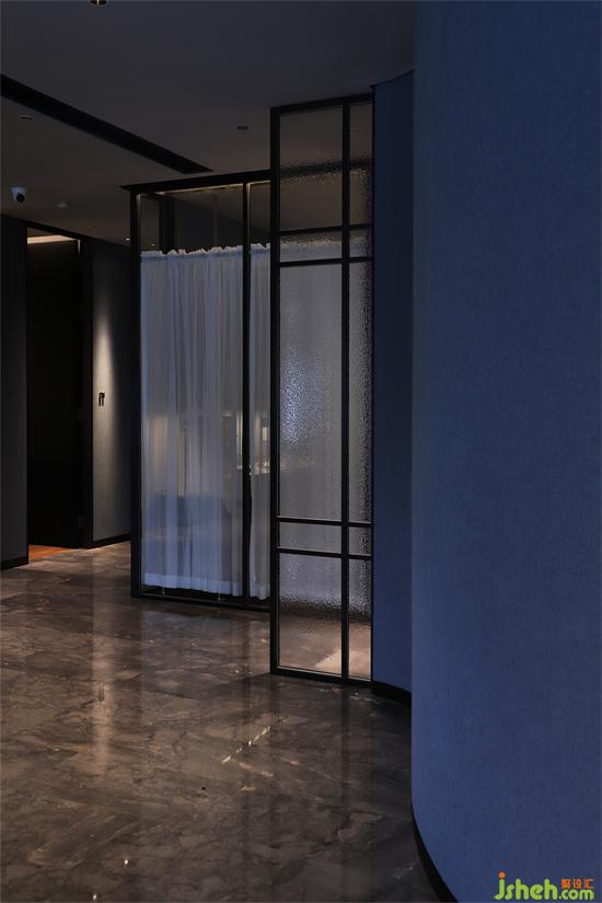 廊道弧形墻面與玻璃隔斷層層遞進(jìn),金屬框架配合拉花水紋玻璃的運(yùn)用,徐記海鮮餐廳設(shè)計(jì)給隔斷增加第二層“透”,賦予走廊空間新的個(gè)性和面貌。