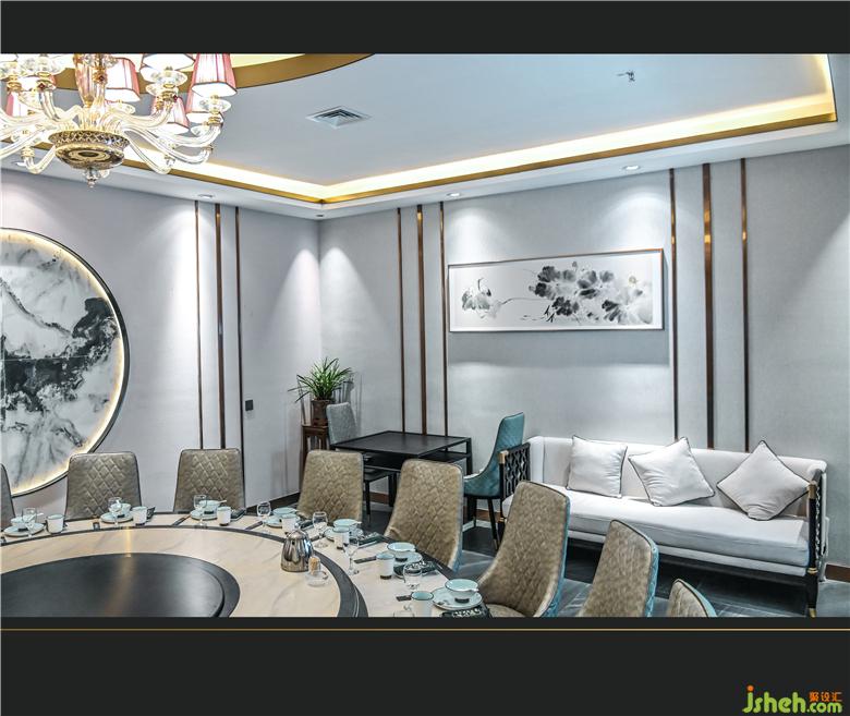 我們從“南山翁”的處世精神里汲取靈感,截取“亭臺(tái)”“屏風(fēng)”等微妙元素,打造“歲夜高堂列明燭,美酒一杯聲一曲”般意味的新中式餐廳。餐廳設(shè)計(jì)