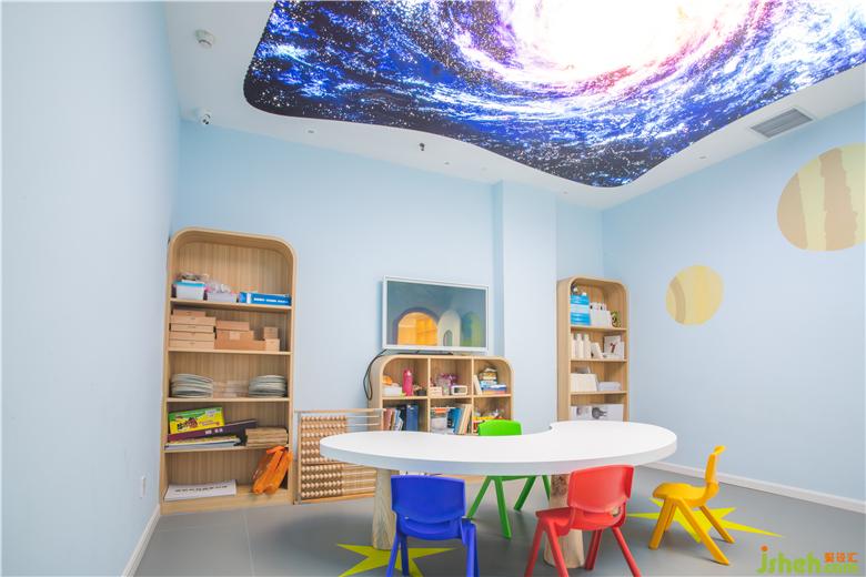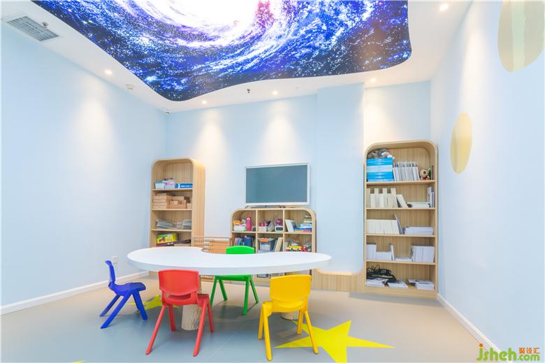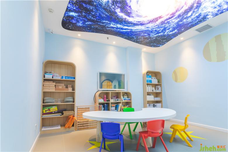 大廳的腦力沖擊畫面讓人過目不忘,主題色彩鮮明,過道是藍(lán)白交替的科技之門,由門而入,有外太空主題教室(星星)、人工智能主題教室(汽車)、環(huán)境科技(森林)主題教室、未知文明主題教室(迷宮),生物科技主題教室(動物世界)、海洋文明主題教室(海底世界),打開每一扇門,都將進(jìn)入不同的主題環(huán)境學(xué)習(xí),對專注力提升和腦力開發(fā),各有側(cè)重與裨益。
