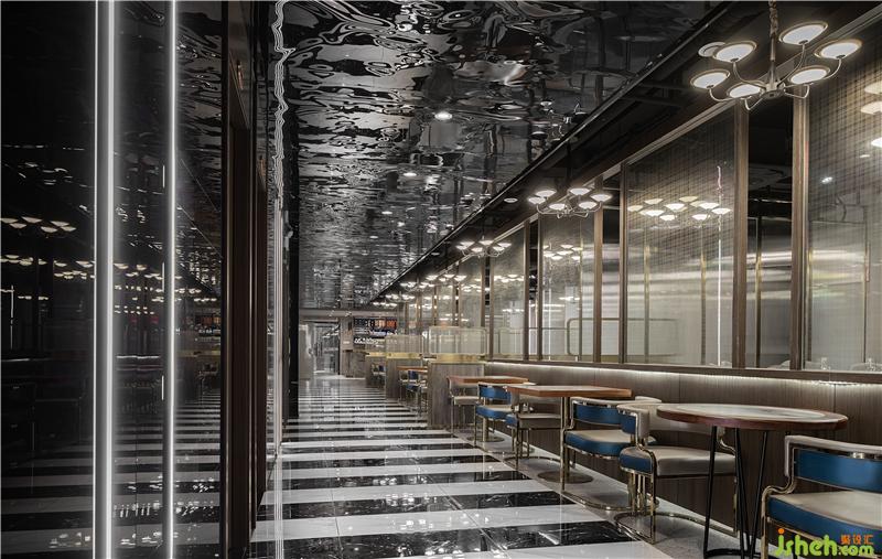 主要用材:鏡面水紋不銹鋼板,夾絲玻璃,線槽燈,涂料