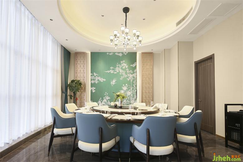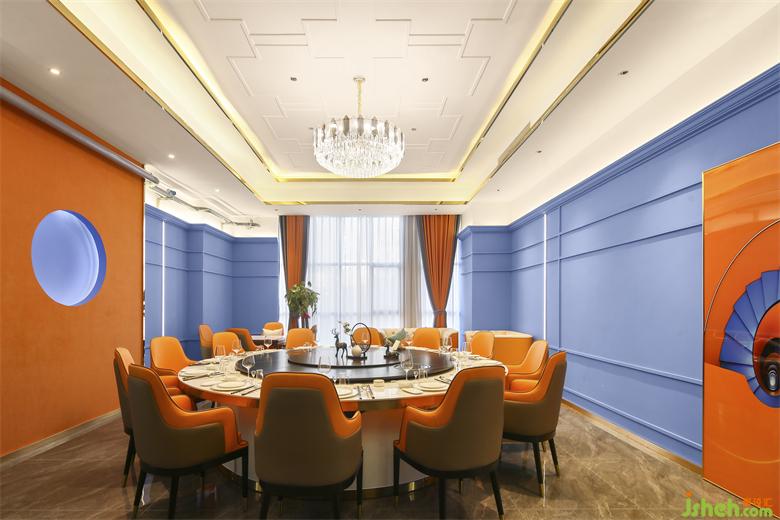 海鮮餐廳設(shè)計(jì)頂面構(gòu)造似深海之淵,給予空間維度與立體感,仰頭一望的澎湃想象在這一刻凝固,對(duì)于海洋的無(wú)畏于向往在空間彌漫。