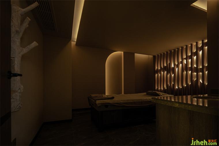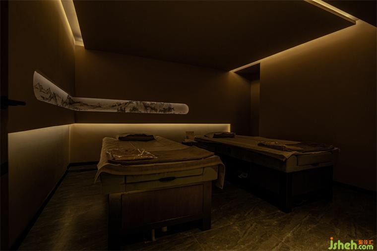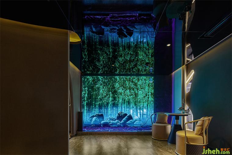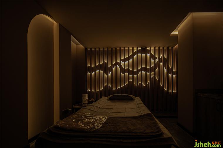 燈光是空間藝術(shù)氛圍的調(diào)節(jié)師。在整個(gè)室內(nèi)的主體色為昏暗的大地色環(huán)境中盡顯純粹而沉靜。特別是燈光的投射與不同位置的藝術(shù)裝置鋪陳相結(jié)合的關(guān)系,比如與頂部的鏡面相遇,養(yǎng)生會(huì)所設(shè)計(jì)讓整個(gè)空間脫離了沉悶,令空間無限延展,孕育出別樣的可能;利用邊角過渡空間塑造的置景,巧而精致:電子屏竹墻、地面的大理石、意境雕刻的水滴與質(zhì)感的海浪……無一不是刻意而為,卻呈現(xiàn)著自然和諧之美。