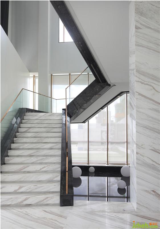 確保了整體開(kāi)闊性,同時(shí)構(gòu)建了建筑室外的和諧關(guān)系,在樓梯下方設(shè)計(jì)水景的布置,在視覺(jué)上創(chuàng)造出鏡面效果,強(qiáng)調(diào)了整體的藝術(shù)形態(tài)。