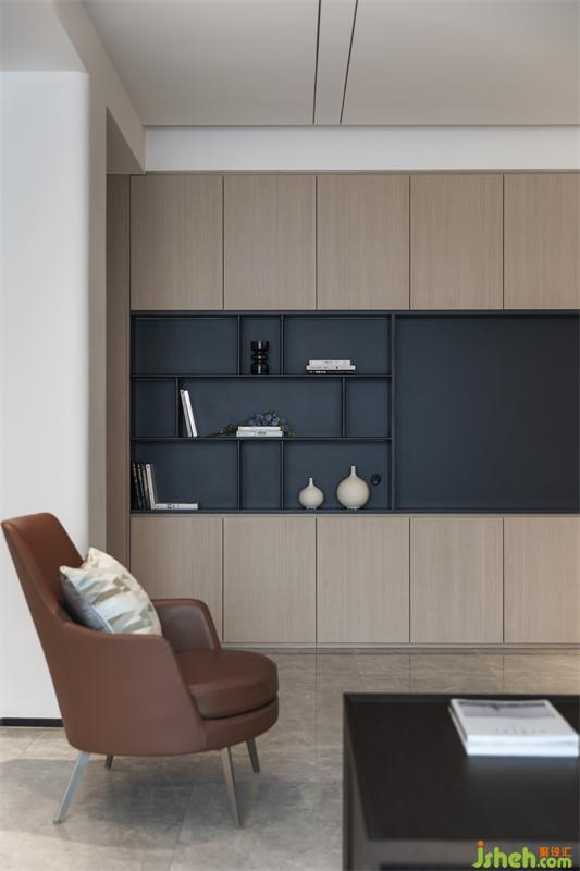 低飽和度的灰為主基調(diào)色系,以暖色的原木飾面裝點空間,隱隱散發(fā)出溫和的氣息。深圳裝修設(shè)計整體空間在石材與木色中尋求一種暖性的色彩平衡,同一色系的不同色 階過渡中,既富有色彩明度的變化,又將色調(diào)完美協(xié)調(diào),觀感柔和,并通過精心安置的照明與隱約可?的細(xì)節(jié),營造出安然于心的舒適空間。