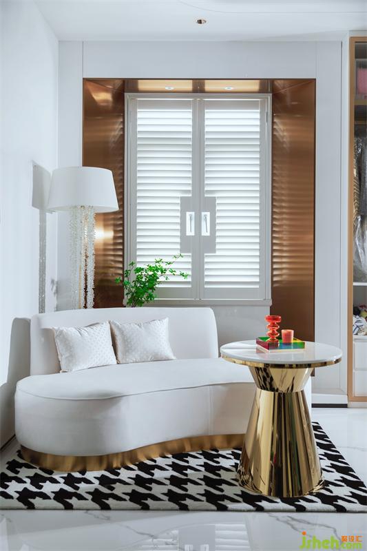 客廳保留著房子最原始的色彩,四壁白墻,既沒有繁雜的吊頂,也沒有花哨的背景,設計師通過對燈光的處理,巧妙地分割出各個功能區(qū)域。諾大的落地玻璃窗肆意地讓自然光在空間中穿梭,伴著白晝的更替,散發(fā)出不同角度不同強度的光暈,豐富了住戶的入住體驗。