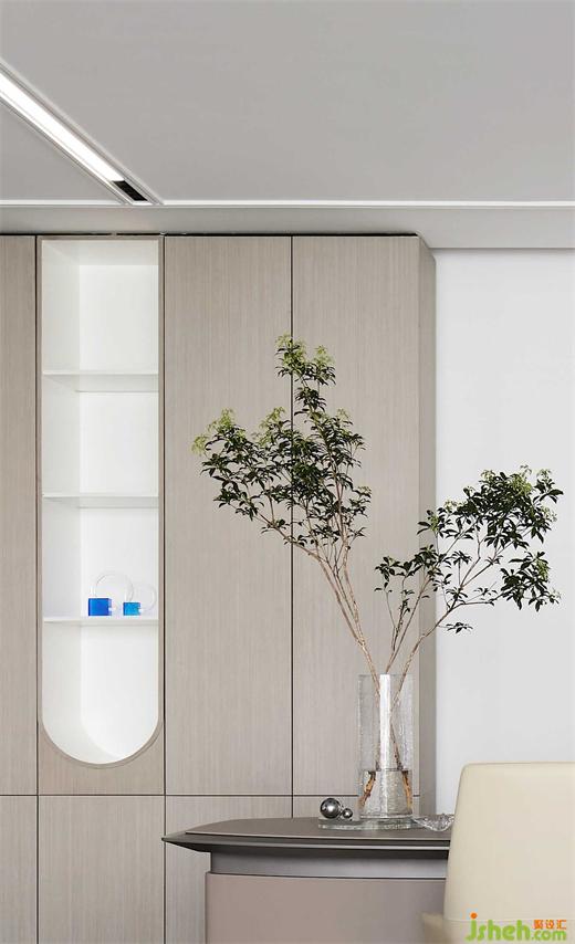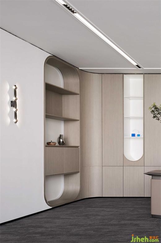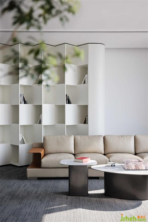 創(chuàng)始人楊總工作之余喜歡博覽群書,設(shè)計延續(xù)整體格調(diào)量身定制了一個兼具收納、環(huán)保、審美的大面積墻體書柜,突出明與暗、凹與凸的對比,善擇基金辦公設(shè)計流露優(yōu)雅大方的氣質(zhì)。