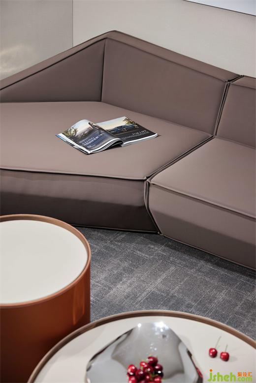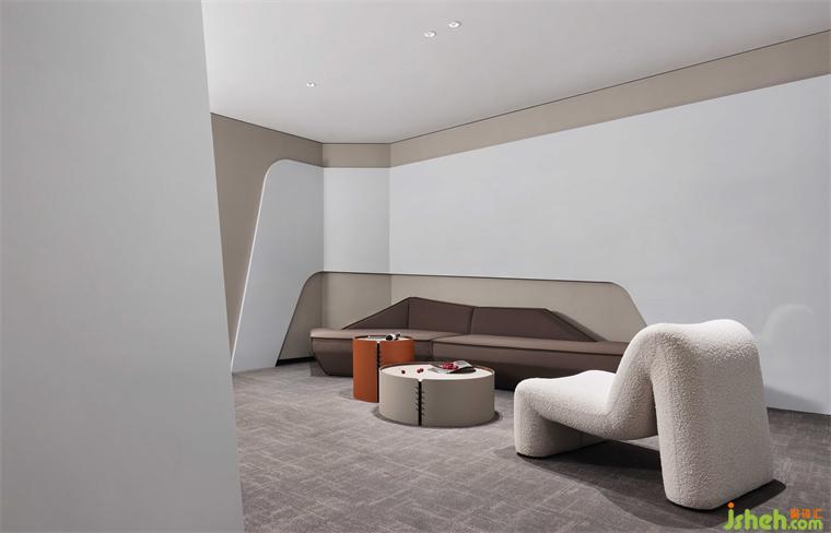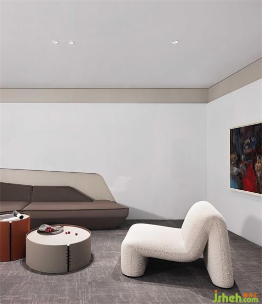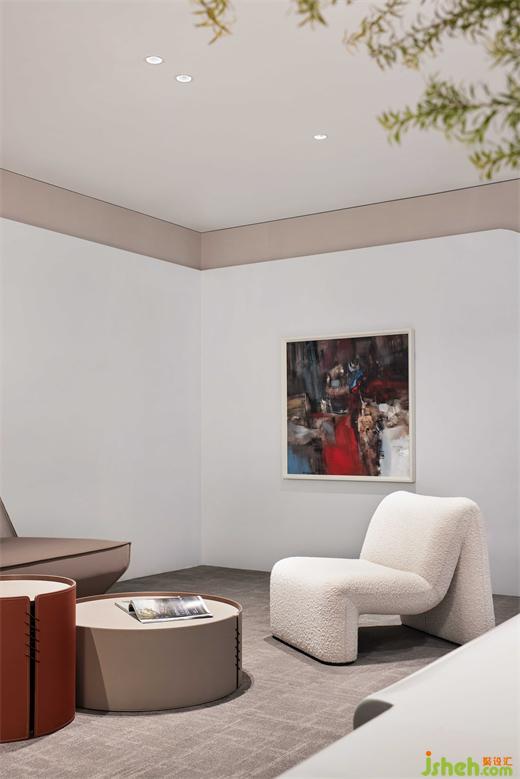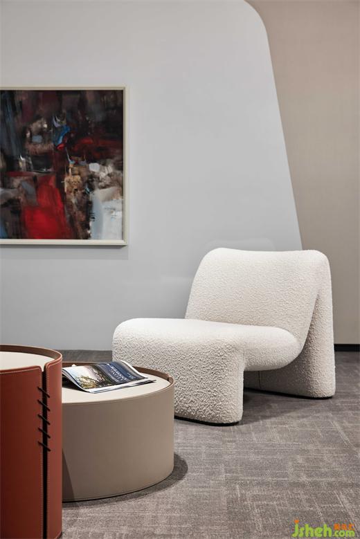 泡泡面料的單椅沙發(fā),有著豐富的肌理,和簡潔的造型構成,愜意、舒適而不失商務型格;辦公總部設計與抽象而濃烈的掛畫,形成一個極具感染力的角落,反映設計、功能與情感之間的平衡。