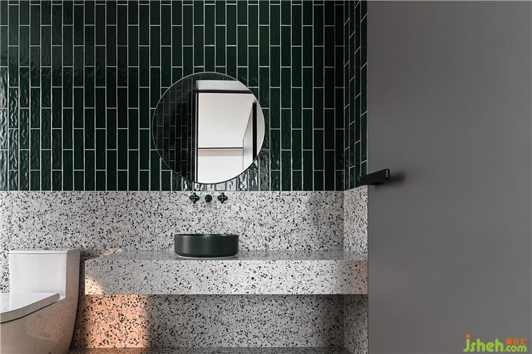 衛(wèi)生間也運用了低飽和度的色彩搭配,百葉窗使得空間足夠通透同時保證足夠的隱私。兒童間的廁所則搭配了湖綠色瓷磚,在某種意義上也是業(yè)主童年回憶的傳承,別墅裝修設(shè)計以及為下一代創(chuàng)造良好環(huán)境的寄望。