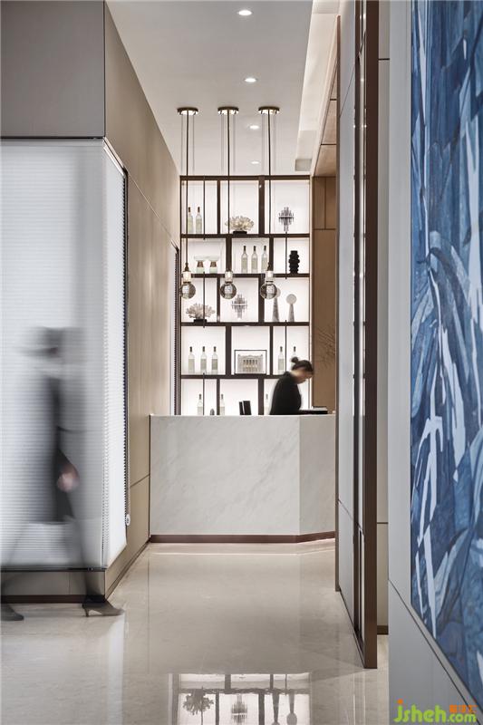 項目位于深圳龍華新區(qū)上塘地鐵B出口,離地鐵站百米之距,區(qū)位優(yōu)越戶型多元,宜居之所;開發(fā)建設(shè)方為深圳豪宅專家之恒裕集團(tuán),高端品質(zhì)要求是恒裕集團(tuán)固有的裝飾形態(tài)。本項目展示中心位于1棟1樓,局部為街鋪;施工塔吊的位置影響、高差的變化、復(fù)雜的柱網(wǎng)結(jié)構(gòu)及有限的層高對內(nèi)裝設(shè)計提出了各種挑戰(zhàn),需在展示中心有限的使用面積下滿足全面功能。在空間布局與動線上充分尊重了空間自身的格局層次與自然采光的優(yōu)勢。整體的調(diào)性,從入口接待區(qū)的設(shè)計已明顯看到這是一下趨向都市簡奢的風(fēng)格,以塊面與線條的美感渲染出空間的流麗與雅奢。接待臺背景的大理石的質(zhì)感清冽干凈,對紋工整,已以它的視覺強(qiáng)烈感表達(dá)了空間的主張:不繁冗的有序、去風(fēng)格的無序、有張力的簡潔、有品質(zhì)的張力。這也正是我們當(dāng)下時代大多數(shù)人希望的生活方式,自由而有序、越簡單卻越有品質(zhì)品味地活在當(dāng)下。裝修設(shè)計