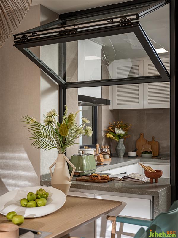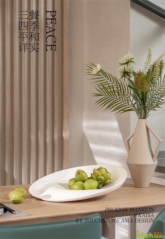 尖崗山下屋,鐵崗湖畔居,鳳鳴水岸95平方戶型樣板間,樣板間設(shè)計(jì)師擬以理想湖林山居的意識(shí)形態(tài),描述那淡泊悠遠(yuǎn)靜享歲月、那日常平和的一天。
