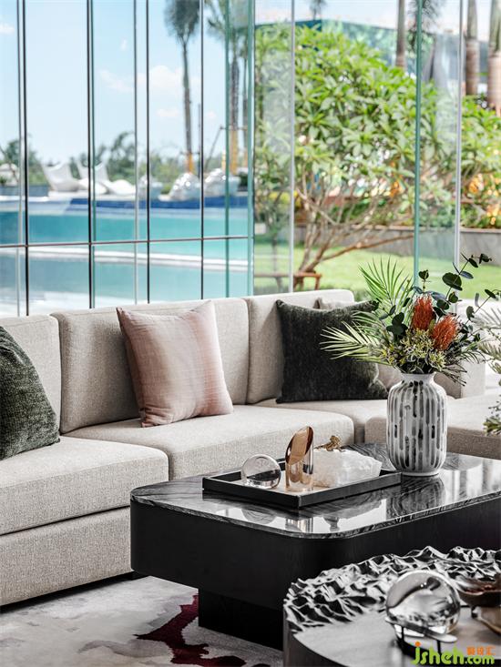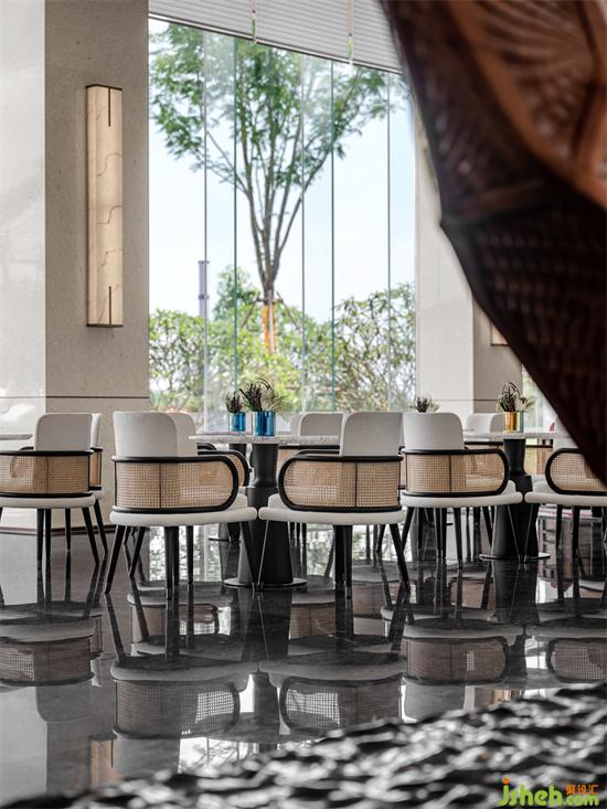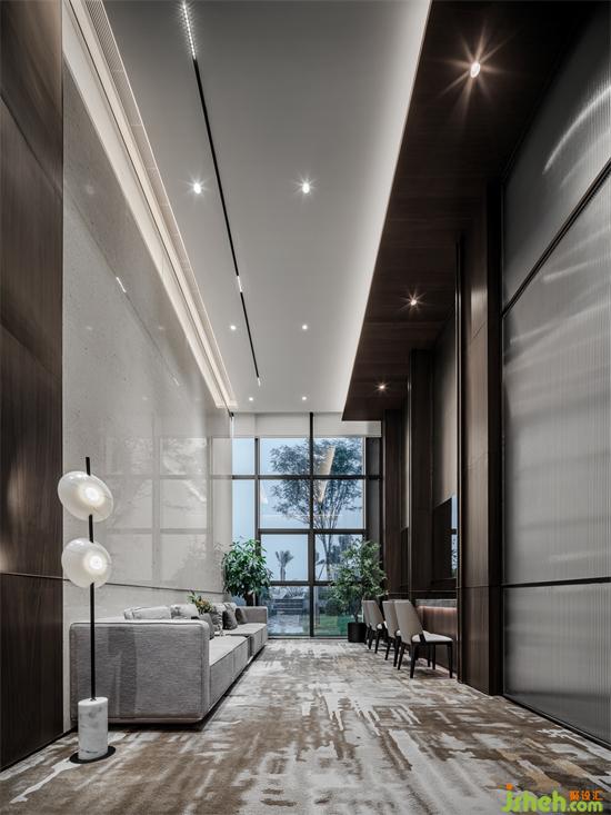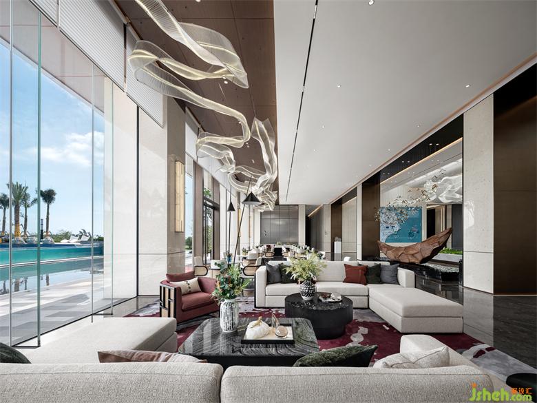 整個(gè)空間與戶外景觀融合,用靜水、倒影與建筑的對(duì)話,招商體驗(yàn)中心設(shè)計(jì)來(lái)呼應(yīng)項(xiàng)目的本身的氣韻利用深邃的暗殊砂紅色新東方藝術(shù)和藤棕天然材質(zhì)點(diǎn)綴其中,強(qiáng)調(diào)連貫性的同時(shí)塑造出更深層次的視覺體驗(yàn)。
