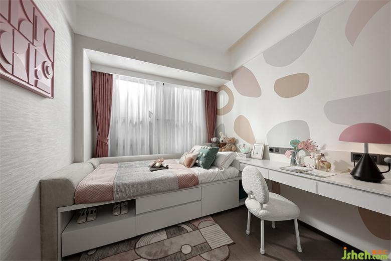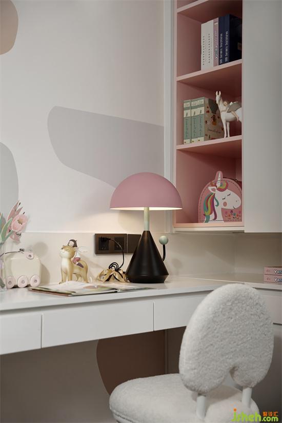樣板間設(shè)計(jì)師跳脫出高飽和,小孩房以粉色粉飾空間,與其它空間的跳藍(lán)簡(jiǎn)直是完樣板房設(shè)計(jì)美搭配。