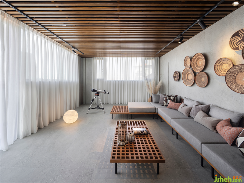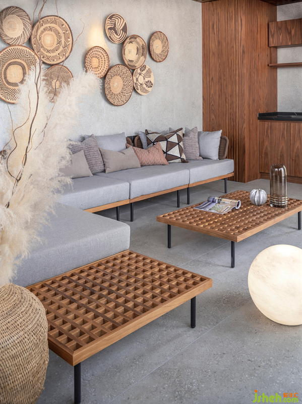 三樓是休閑廳和戶外花園,區(qū)別于一樓和二樓的嚴謹,三樓的氛圍是更加休閑、放松的。別墅裝飾舒適的L型沙發(fā)與極具設計感的鏤空茶幾,搭配純手工編織的壁飾營造出獨特的異域風情,與三兩好友閑坐于此,享受愜意的休閑時光。