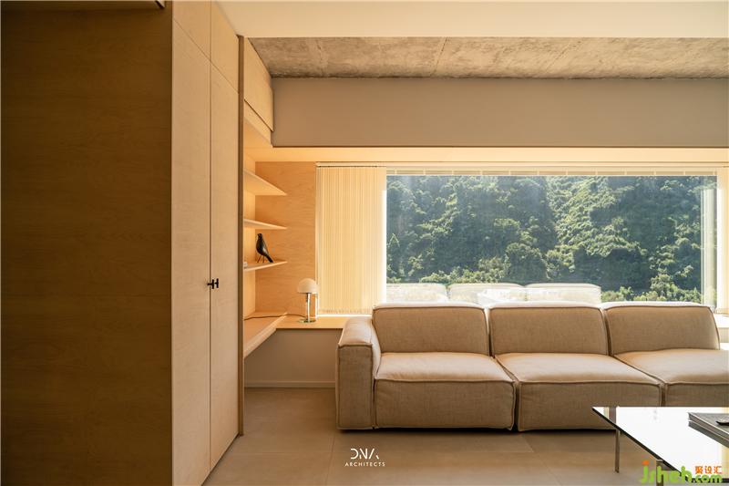 ▼該項(xiàng)目是設(shè)計(jì)師為自己設(shè)計(jì)的居所,房屋西面臨江環(huán)山,景色悠然。為了更好地襯托外界環(huán)境,室內(nèi)空間的材質(zhì)和色彩都運(yùn)用得十分克制,以混凝土、洞石、樺木這些極具親和力的材質(zhì)裝點(diǎn),營造”自在、恰當(dāng)“的氛圍。這不僅僅是一種設(shè)計(jì)手段,更多是設(shè)計(jì)師理想生活的一種縮影。