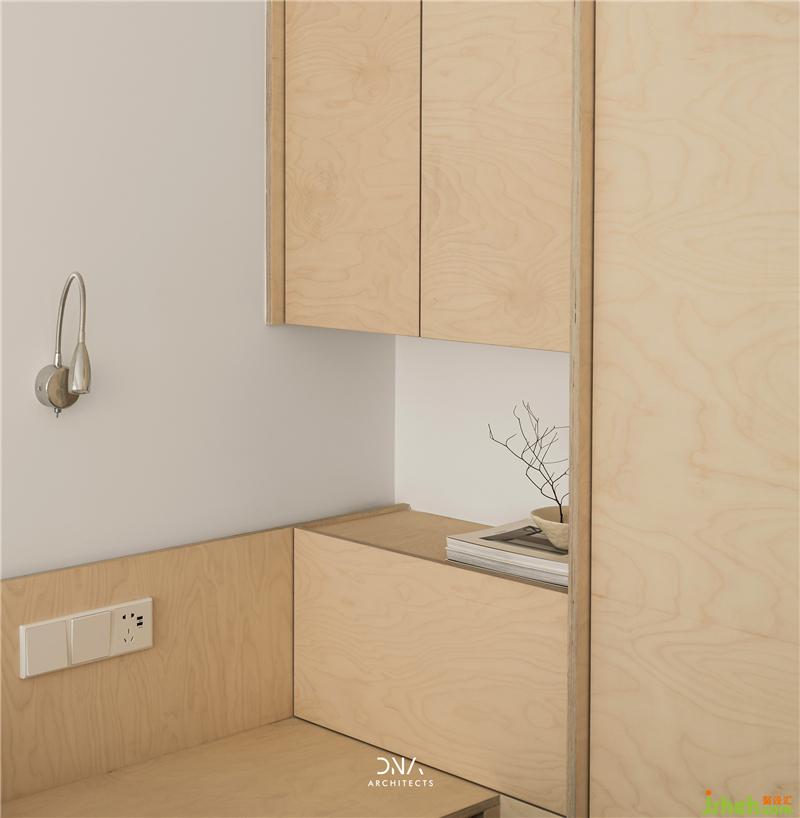 The secondary bedroom only used birch a kind of material, changing different functional form with different morphological dimension. In addition, the texture of birch is warm and moist, also send out a special fragrance. Through the smell sense to create a natural and simple living atmosphere.