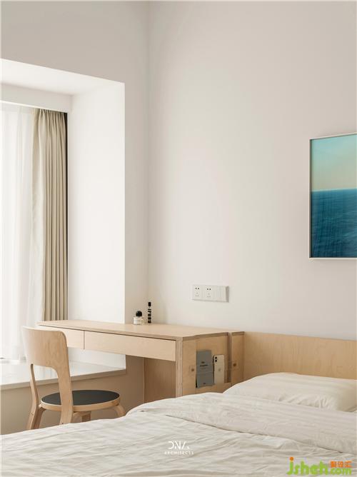 次臥室僅用了樺木一種材質(zhì),以不同的形態(tài)尺寸變換著不同的功能形式。樺木的質(zhì)感除了外在的溫潤杭州室內(nèi)設(shè)計師,還散發(fā)著一種特殊的清香。通過氣味感官營造出自然樸實的居住氛圍。