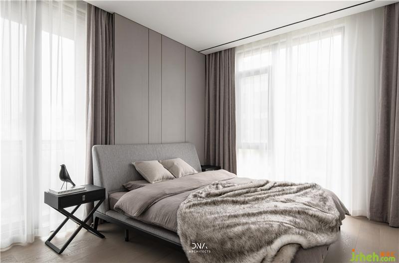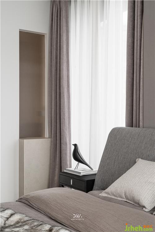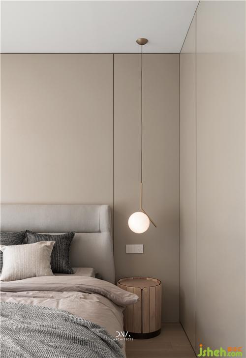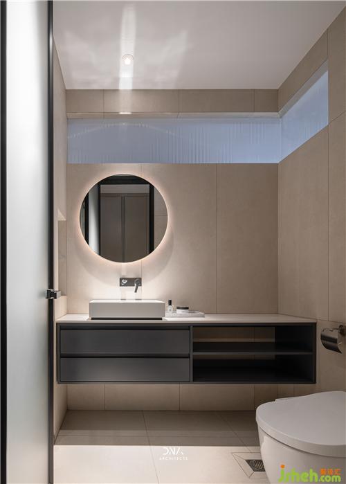 次臥內(nèi)衛(wèi)通過墻體上方的高窗,引入外部的光線,頗具趣味性。