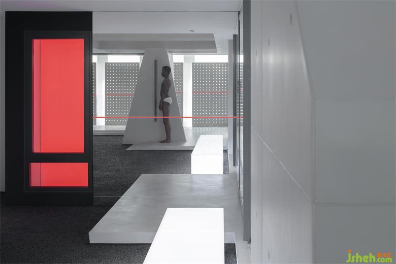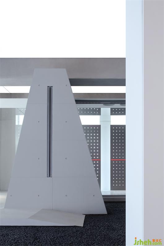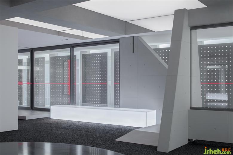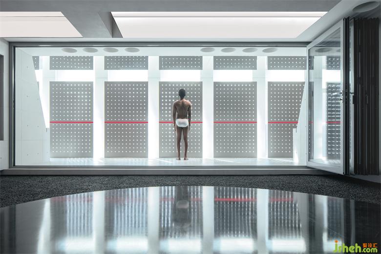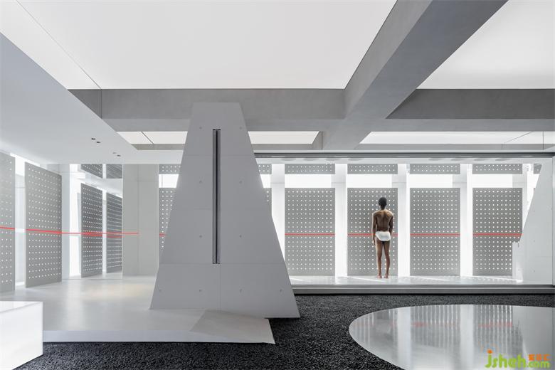 這是一個(gè)門窗系統(tǒng)展廳,一個(gè)以自然的設(shè)計(jì)語(yǔ)言去表達(dá),最終呈現(xiàn)出未來(lái)和荒蕪感的空間。