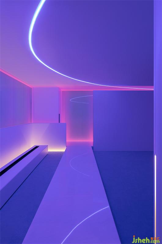 We often wonder how to create different emotional expressions in the market when the market is full of white spaces with serious homogeneity and single materials. We use RGB time delay lights to solve the problem. When the lights are projected on the glass at night, they leave a gradual color, presenting another abnormal atmosphere. Aurora, psychedelic, and the future are all abbreviations for spatial feeling. We can imagine that these glasses have become the glass curtain walls of private houses in the future, providing a new concept of building materials. The outdoor landscape can be switched at will, in the depths of the jungle, on the deserted planet, and on the secluded seabed. The endless day shooting stars, the new brightness of the universe night, the imaginary rich changes of different sky and mood, about the hot, cold, public restraint, psychedelic and reality. Feel the transient changes of spatial emotions with the change of light, and the presumptuous spreading of teeth and claws in the space is the calm after the catharsis waiting for the return.