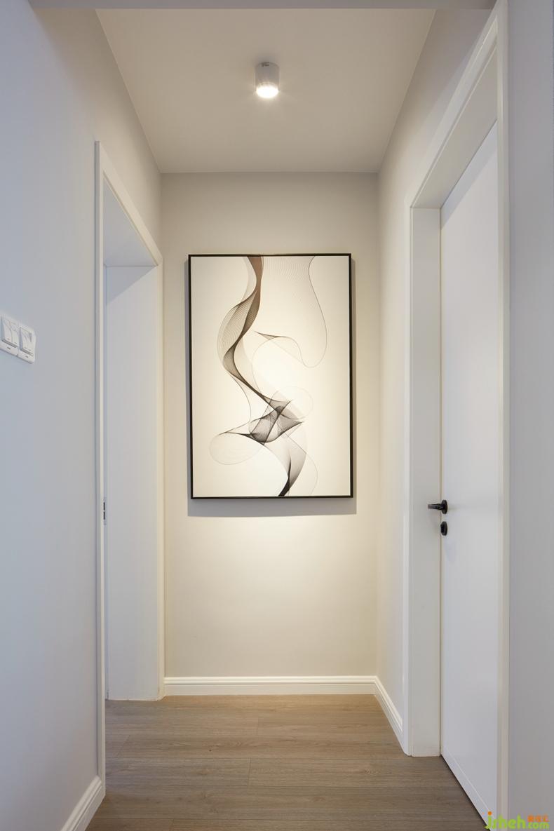入戶:左側(cè)為餐廳,右側(cè)為客廳,正對著端景墻以一副現(xiàn)代抽象畫為點(diǎn)綴。在設(shè)計(jì)手法上跳出傳統(tǒng)屏風(fēng)隔斷形成的小玄關(guān),而采取畫龍點(diǎn)睛手法將目光引向過道端景墻。視野的延伸性,即是想表現(xiàn)的重點(diǎn)。